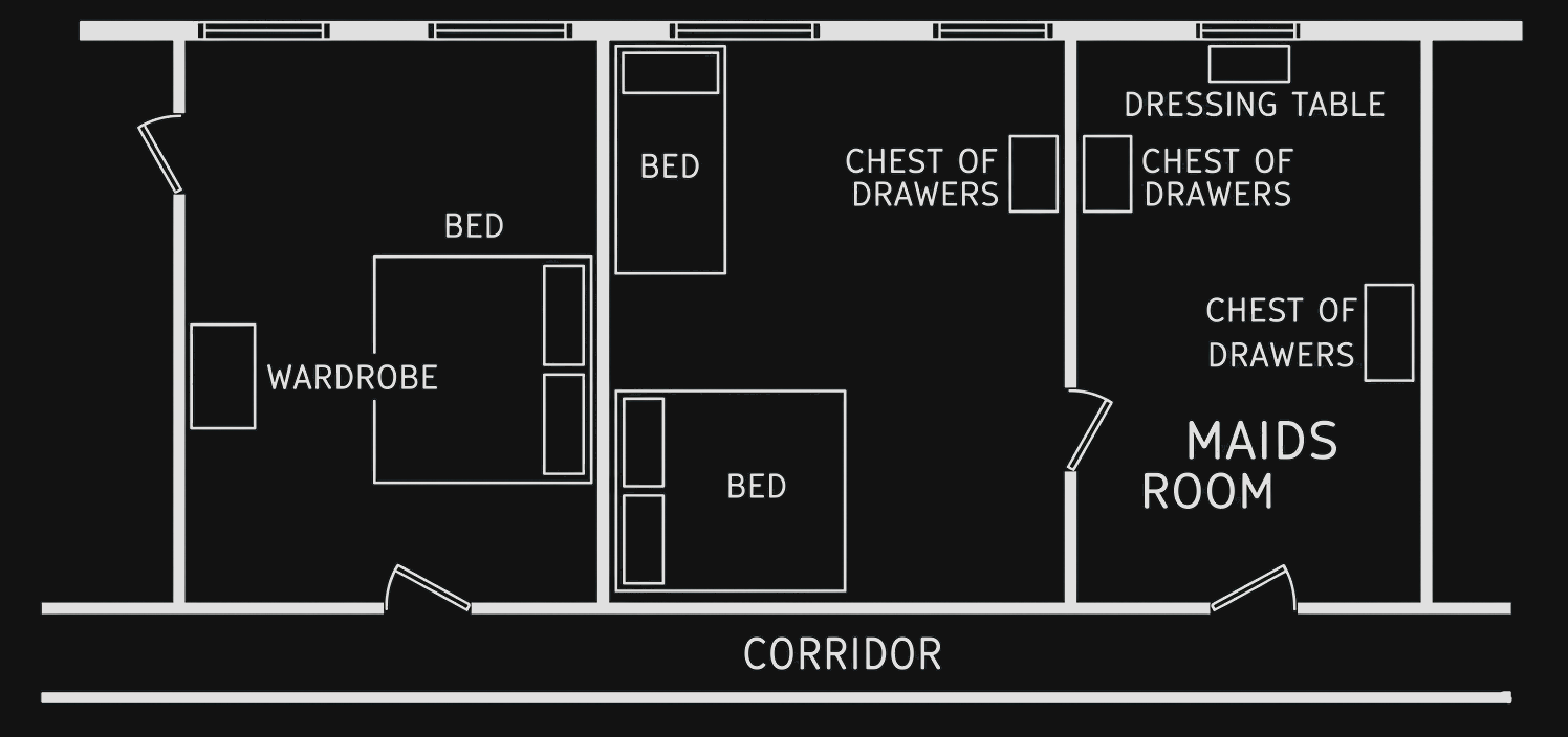 The woman rose willingly, and we accompanied her down the passage again. Mr Opalsen’s room was on the other side of the corridor, its door facing that of his wife’s room. The chambermaid unlocked it with her pass-key, and we entered.